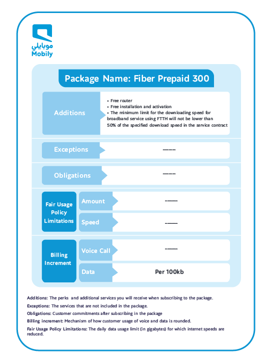- Mobily Fiber router- the central device for receiving your Mobily Fiber service, with Wi-Fi or Ethernet, your home computers can securely share high speed internet connection