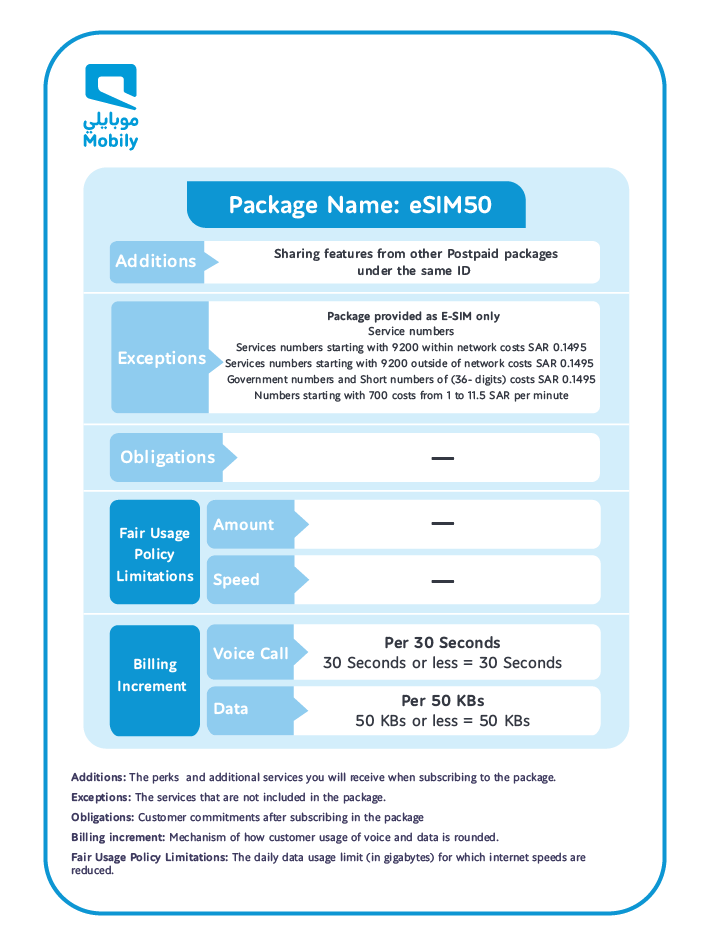 After activating the sharing eSIM50 package user will be able to enjoy the following features: