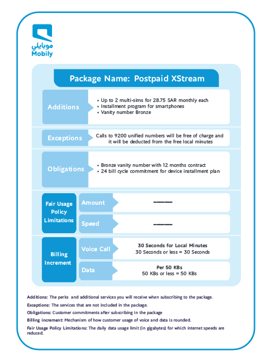- The Setup Fee for new postpaid packages is SAR 57.5, a one-time payment.